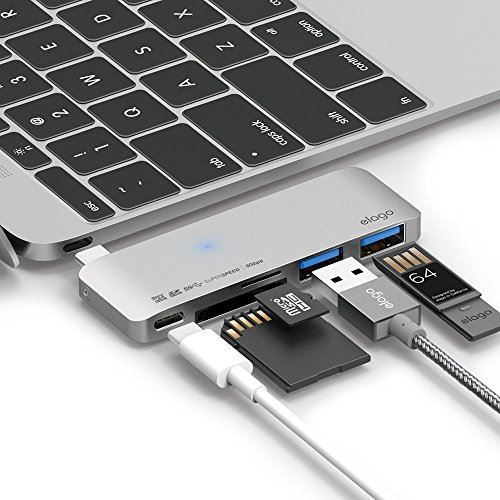 elago ALUMINUM CHARGING MULTI HUB USB-C USB Type-C 対応 ハブ USB3.0 ハブ × 2ポート / microSD カードリーダー/SD カードリーダー 搭載 マルチ コンボハブ 充電機能 PD 対応 for MacBook Pro 2017 / MacBook シルバー