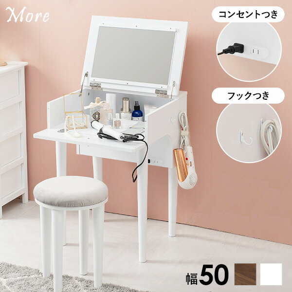 【お得クーポン配布中】ドレッサーセット 選べるLEDライトあり/なし 幅50cm【More】モア(ドレッサー デスク おしゃれ スツール付き コンセント付き テーブル 化粧台 コンパクト 鏡台 ミラー 収納 一面鏡 ドレッサーデスク ドレッサーテーブル コンセント メイク)