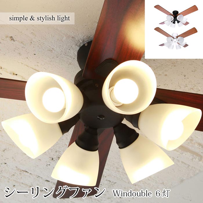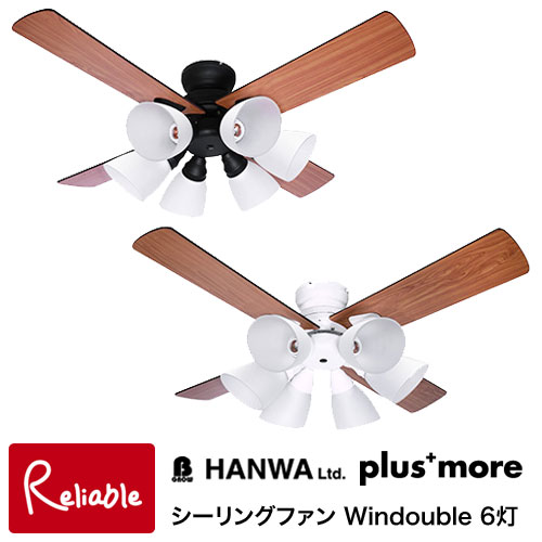 【ポイント12倍】《plus more》プラスモア シーリングファン 6灯ライト Windouble 6L リモコン付き 白熱電球・電球型蛍光ランプ対応 デザイン照明 リビング お洒落 モダン 阪和 big-102