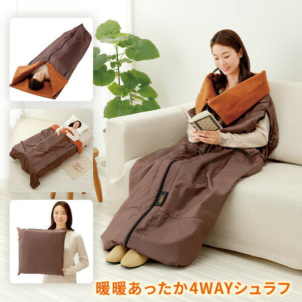 着る毛布 寝袋 more hot 暖暖あったか4WAYシュラフ ブラウン 掛け布団 布団 毛布 クッション ひざ掛け 防災用品 防災グッズ フェーズフリー 災害 停電 備え 車中泊 蓄熱 保温 防寒 エコ 節電 省エネ 電気不要 洗える 丸洗い メイダイ 【送料無料】