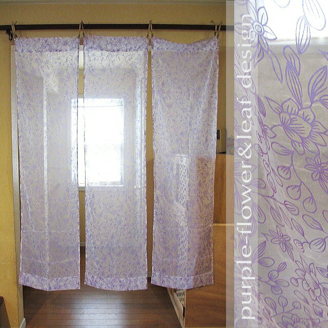 のれん 北欧 おしゃれ ロング丈 花柄 間仕切り アジアン バリ ハワイアン カジュアル インテリア リゾート 花柄のれん カーテン パープル フラワー リーフ 爽やか モダン かわいい リゾートカーテン お花デザイン 紫 白 ホワイト 布 リゾートのれん ライトパープル