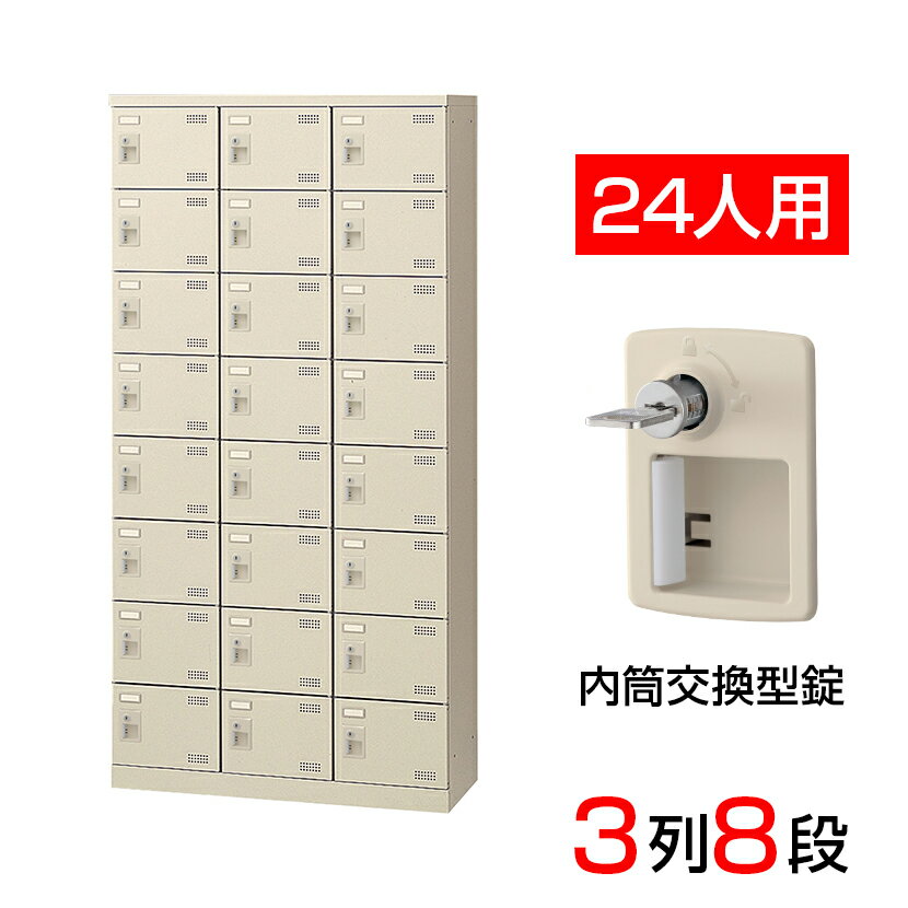 【完成品】【日本製】 シューズボックス 下駄箱 3列8段24人用 内筒交換錠 幅90cm スチール製 SLB-24-T2靴箱 シューズラック 業務用 学校 昇降口 玄関 収納 鍵 鍵付き 錠付き 扉有り 扉付き 扉あり 扉つき 交換式