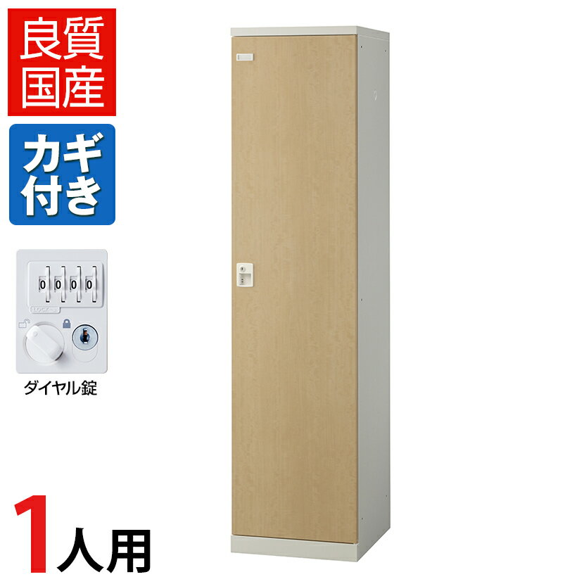 【完成品】【日本製】1人用 ロッカー スチールロッカー(木目扉)鍵付き ダイヤル錠 幅450×奥行515×高さ1800mm/SE-SLB-1-D2オフィスロッカー 更衣ロッカー スチール製 オフィス 更衣室 会社 業務用 かぎ付き 木目調 ダイヤル式 ダイヤルロッカー ダイヤルキー