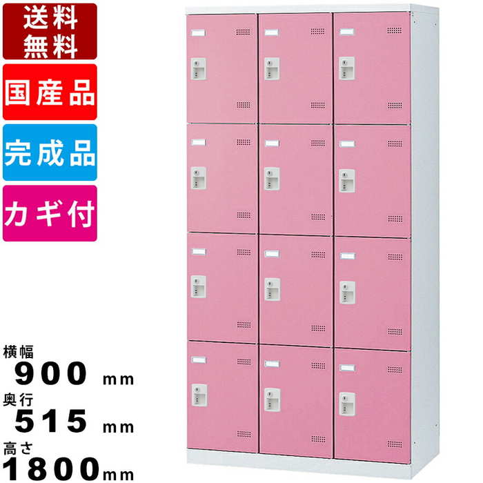 【楽天BLACKFRIDAY!各種クーポン配布中】12人用更衣用ロッカー SLB-12-S2 12人用ロッカー ブルー ピンク ホワイト シリンダー錠タイプ 3列4段12人用ロッカー オフィス家具 オフィスロッカー スチール製 4mm角パ