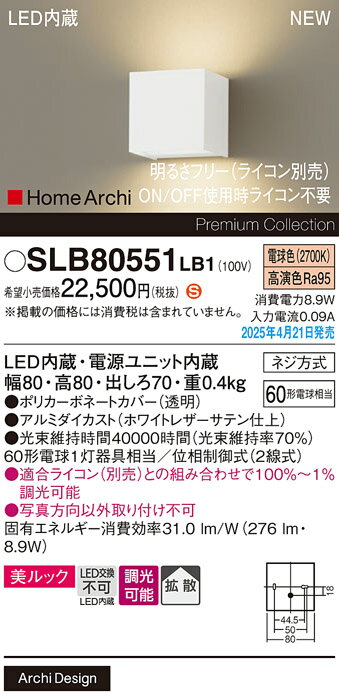 SLB80551LB1 パナソニック LEDブラケットライト 上下配光 調光 拡散 電球色【LGB80551LB1の後継機種】