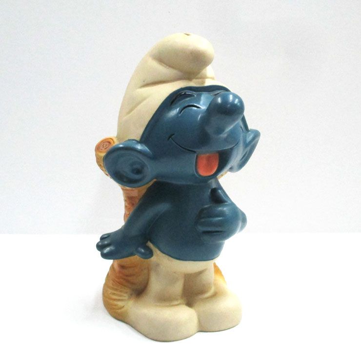 スマーフが木を背にとびっきりかわいい笑顔の貯金箱です♪ 古いアイテムなので、くすんだ感じの風合いになっているのも 味があっていい感じですね(pq´v`*) 大きさがそこそこあるので、インテリアとしてもバッチリ☆ 【サイズ】約高さ18センチ 【素材】ソフトビニール ヴィンテージ物の為、経年劣化による傷や傷み、汚れがございます。 専用のパッケージはございません。 光りの加減により色味が異なる場合がございます。 また、店舗との共同販売の為、 ご注文を受け付けましてもお買い求めできない場合がございます。 予めご了承くださいませ。