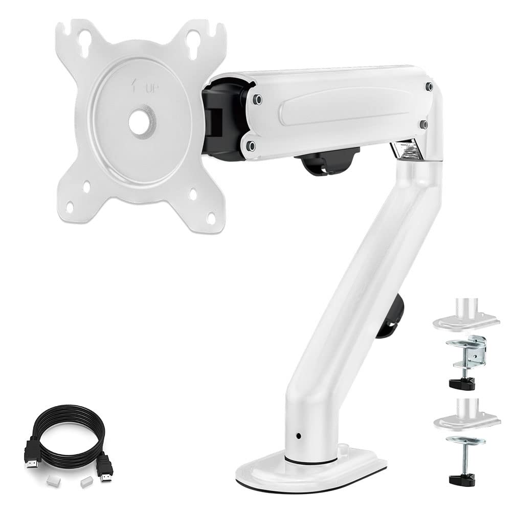Besince モニターアーム 17?27インチ アームスタンド ディスプレイアーム VESA規格 1画面 ディスプレイスタンド モニタースタンド ガススプリング式 4軸 クランプ式 グロメット式 360度回転 耐荷重7kg 黒 白 仕事 ゲーム (Whi