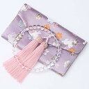 LEOBEE 女性用数珠 マグネット式数珠袋付き 念珠 じゅず 葬式 葬儀 法事 念誦 全ての宗派で使用頂け 水晶 落ち着いたピンク プレゼント