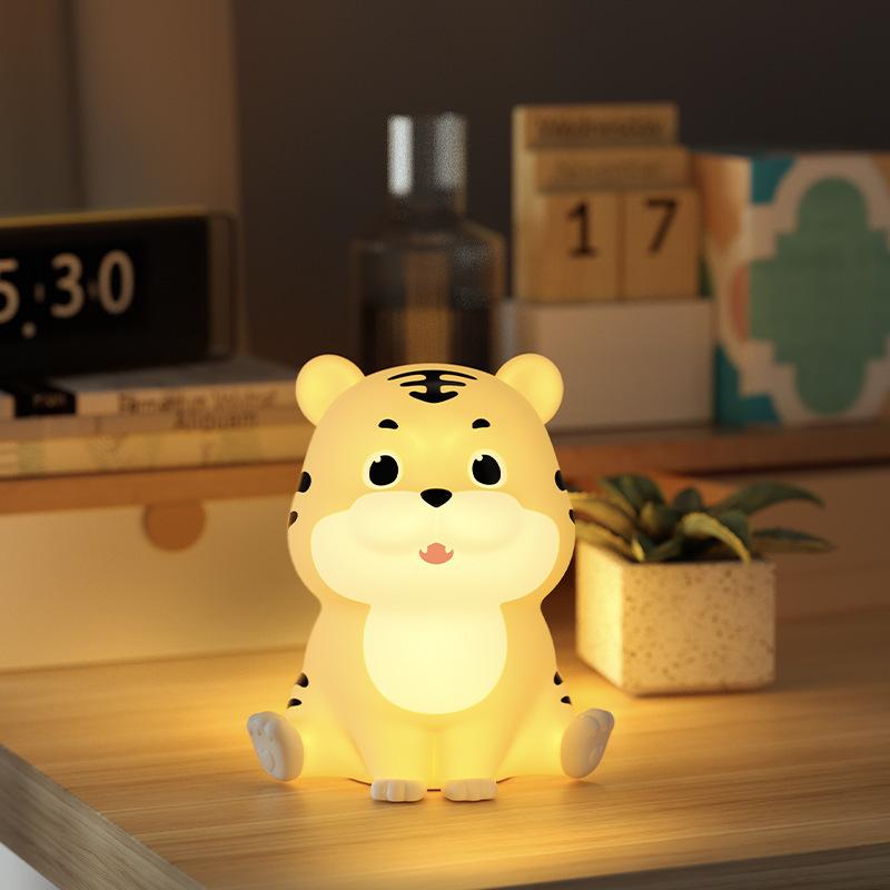 光 USB充電式 動物 かわいい 萌え 間接照明 授乳ライト ベッドサイドランプ シリコン製 虎モチーフ ベビー 子供用 ナイトライト