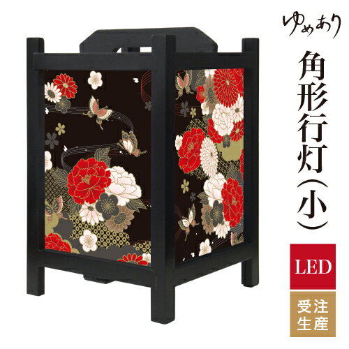和風 行灯 フロアライト おしゃれ 照明 LED 間接照明 ルームライト あんどん 床置き 寝室 旅館 ホテル プレゼント 角型 角形 角形行灯 牡丹に舞う 黒 小型 小さいサイズ