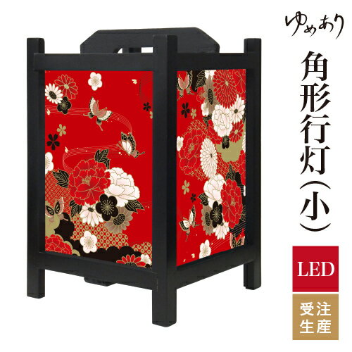 和風 行灯 フロアライト おしゃれ 照明 LED 間接照明 ルームライト あんどん 床置き 寝室 旅館 ホテル プレゼント 角型 角形 角形行灯 牡丹に舞う 赤 小型 小さいサイズ