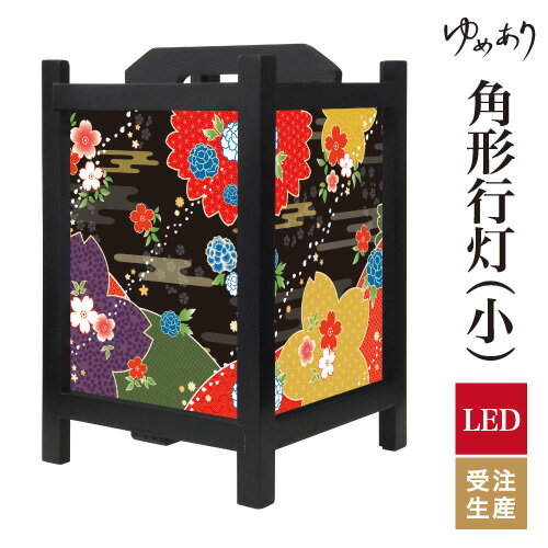 和風 行灯 フロアライト おしゃれ 照明 LED 間接照明 ルームライト あんどん 床置き 寝室 旅館 ホテル プレゼント 角型 角形 角形行灯 桜牡丹 墨色 小型 小さいサイズ