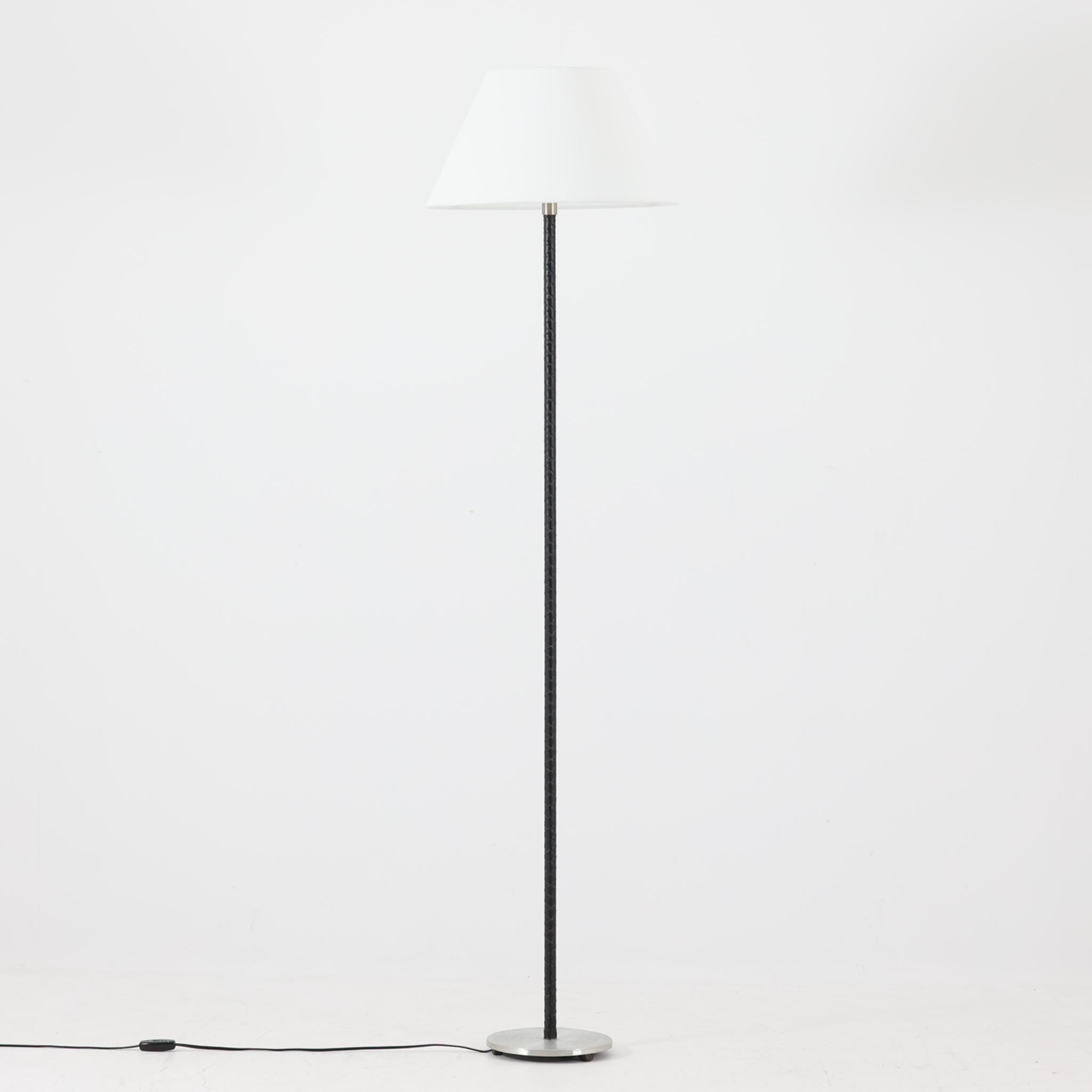 Jo Hammerborg フロアランプ Flet 革×スチール 高さ155cm Fog & Morup ヨー・ハーマボー フォグ&モーラップ デンマーク製 北欧ビンテージ照明 間接照明 スリム照明 革巻き支柱 レザー巻き 照明スタンド