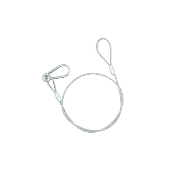 演出照明の天吊り時の落下防止用ワイヤー 灯体の吊り下げ時には必ず必要なセーフティーワイヤー。深刻な落下事故を防ぎます。 パーライト、レーザープロジェクター、スモークマシンなどあらゆる天吊り器具に、安全策として必ずご使用下さい。 【仕様】 ◎長さ:100cm ◎安全荷重/最大荷重 50kg/500kg