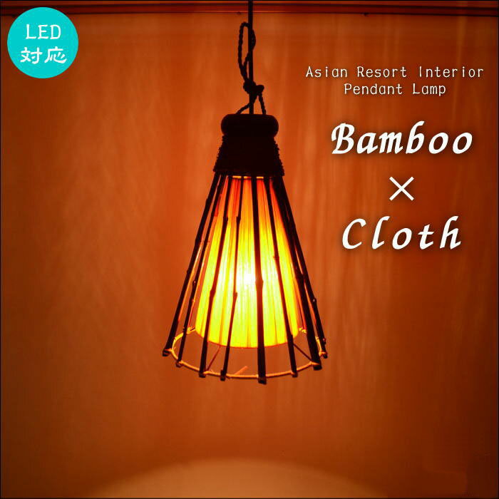 【LED電球標準】吊り下げ照明 バンブー&布 和傘風 オレンジ E17 40W 照明器具 ペンダントライト 天井照明 ハンギングライト 間接照明 インテリア照明 アジアン バリ 雑貨 照明 アジアン シェード リゾートインテリア 和風 モダン LED 店舗内装 おしゃれ 個性的 LAM-0469-OR