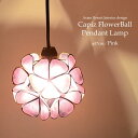 【LED電球標準】吊り下げ照明 カピス貝 《フラワーボール》 径17cm 高さ14cm Sサイズ E17 60W -ピンク- 照明器具 ペンダントライト シーリングライト 天井照明 インテリア照明 間接照明 照明 アジアン シェル 花型 LED アジアン バリ 雑貨 おしゃれ SLA-0016-PK
