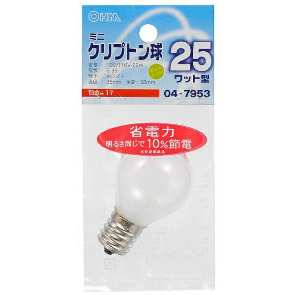 オーム電機|OHM ELECTRIC LB-S3725K-W 電球 ミニクリプトン球 ホワイト [E17 /一般電球形 /電球色 /1個][LBS3725KW]