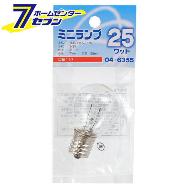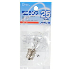 オーム電機 ミニランプ S35型 E17/25W クリア04-6355 LB-S3725-C[白熱球:白熱電球ミニボール形]
