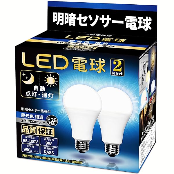 LED電球明暗センサー電球(人体検知機能なし)常夜灯暗くなると自動で点灯明るくなると自動で消灯E26口金12W昼白色相当1510LM省エネ玄関廊下駐車場職場バイク置き場盗難防止PSE認証2個セット…