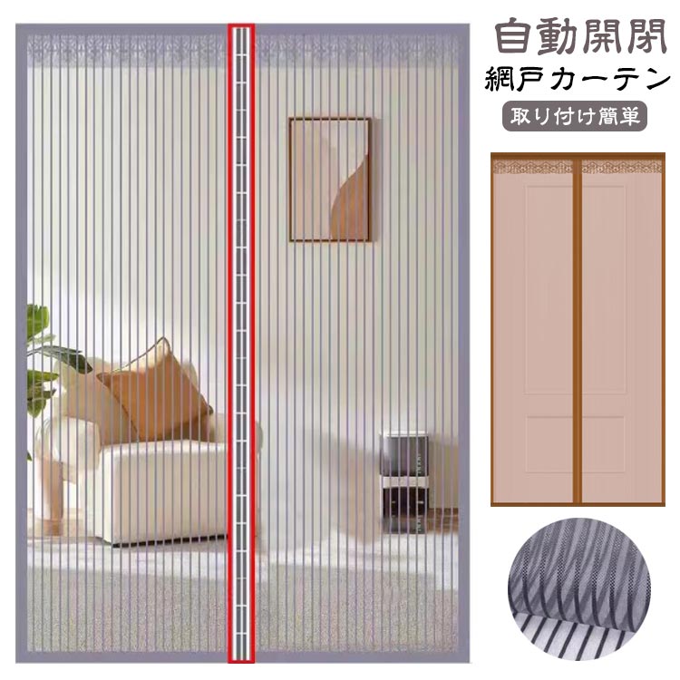 網戸カーテン。夏に向けて防虫対策、高密度メッシュ、虫 蚊 ハエなどをしっかり入れ防止できます。害虫をシャットアウト!蚊が通らない穴を編んで作られたので、玄関やお部屋など入口に設置すれば、ドアを開けたままでも、蚊、ハエ、虫などの侵入を防止できます。玄関カーテンは蚊、ハエ、虫などが気になる季節の必要品です。簡単取付・張り替えOK!玄関、ドア、開き戸、勝手口やベランダなど色々な場所に取り付け可能!面倒な工事が不要、3stepだけで、女性の方でも簡単に操作できます。自動で閉まる!カーテンの真ん中はマグネット式なので、人や猫、犬などは通り抜けたら、カーテンが自動で閉まります。荷物を運んでも両手が解放でき、出入りもスムーズにとても便利です。通風性・断熱性!夏には、エアコンを使わずに本品を取り付けることによって、空気の入れ替えが出来、風通しが良くなり涼しく暮らすことができます。冬には、室内の暖気が逃げにくくなり、断熱効果があります。出入り楽々・残り跡なし!強いマグネットで両手を上げず自動開閉、ワンちゃんや猫ちゃんまで出入りが楽々に。また、剥がしても残り物はなく、賃貸住まいのお客様にもオススメ! サイズ 70×200cm 80×190cm 80×200cm 80×210cm 85×195cm 85×200cm 85×205cm 85×210cm 90×190cm 90×200cm 90×205cm 90×210cm 90×220cm 95×200cm 95×205cm 95×210cm 95×220cm 100×200cm 100×210cm 100×220cm サイズについての説明 サイズ:70×200cm 80×190cm 80×200cm 80×210cm 85×195cm 85×200cm 85×205cm 85×210cm 90×190cm 90×200cm 90×205cm 90×210cm 90×220cm 95×200cm 95×205cm 95×210cm 95×220cm 100×200cm 100×210cm 100×220cm※サイズ計測には誤差が生じます。 素材 ポリエステル 色 1コーヒー 1グレー 2コーヒー 2グレー 備考 ●サイズ詳細等の測り方はスタッフ間で統一、徹底はしておりますが、実寸は商品によって若干の誤差(1cm~3cm )がある場合がございますので、予めご了承ください。 ●製造ロットにより、細部形状の違いや、同色でも色味に多少の誤差が生じます。 ●パッケージは改良のため予告なく仕様を変更する場合があります。 ▼商品の色は、撮影時の光や、お客様のモニターの色具合などにより、実際の商品と異なる場合がございます。あらかじめ、ご了承ください。 ▼生地の特性上、やや匂いが強く感じられるものもございます。数日のご使用や陰干しなどで気になる匂いはほとんど感じられなくなります。 ▼同じ商品でも生産時期により形やサイズ、カラーに多少の誤差が生じる場合もございます。 ▼他店舗でも在庫を共有して販売をしている為、受注後欠品となる場合もございます。予め、ご了承お願い申し上げます。 ▼出荷前に全て検品を行っておりますが、万が一商品に不具合があった場合は、お問い合わせフォームまたはメールよりご連絡頂けます様お願い申し上げます。速やかに対応致しますのでご安心ください。