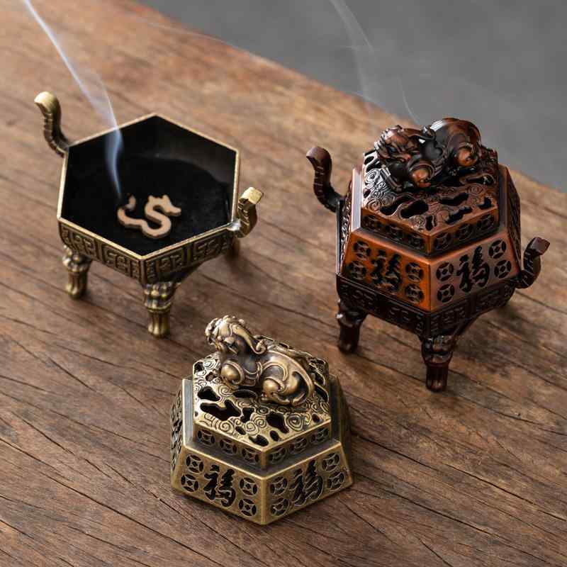 香炉 アンティーク調 銅合金製 ヒキュウ キリン 神獣 室内用 卓上 茶道 オフィス リビング 玄関 手作り 高級感 お香立て 線香立て 渦巻香立て リラックス 癒し 和風 インテリア