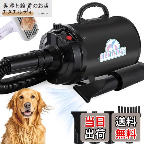 【送料無料】NEWTRY ペットドライヤー 犬用 ペット用 ドライヤー ブロワー 送風機 無段階速度制御 3つのノズル付き ブラシ付き 風速、温度調整可能 大風量 騒音低減 100V 50Hz/60Hz 650-1800W (黒)
