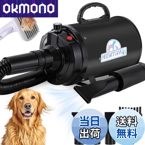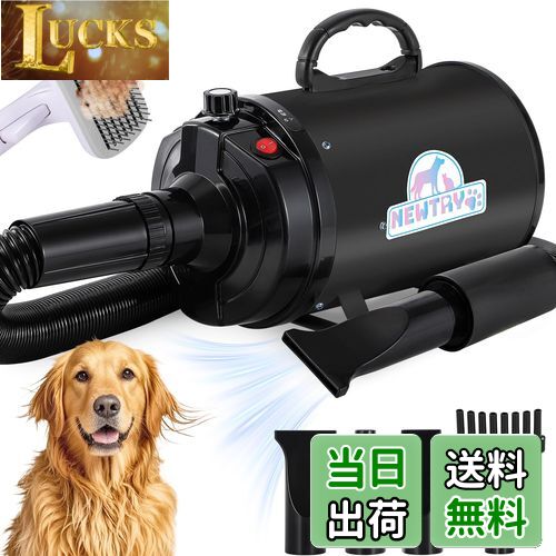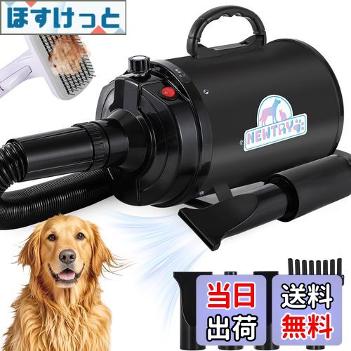 NEWTRY ペットドライヤー 犬用 ペット用 ドライヤー ブロワー 送風機 無段階速度制御 3つのノズル付き ブラシ付き 風速、温度調整可能 大風量 騒音低減 100V 50Hz/60Hz 650-1800W (黒)