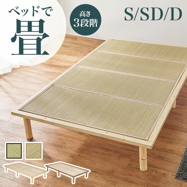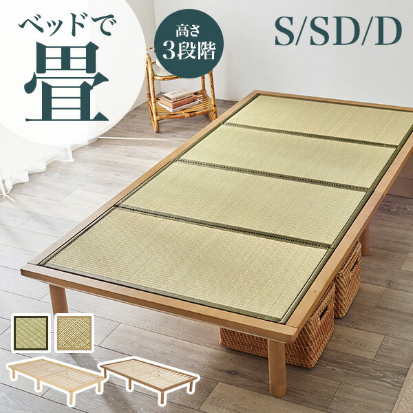 【5%OFFクーポンあり★22日20時〜先着50名】高さ3段階すのこベッド&畳マットレスSET シングル/セミダブル/ダブル(畳ベッド マットレス すのこ 畳 マット い草 吸湿 おしゃれ 木製 すのこベッド ヘッドレスベッド 木製ベッド ロング ロングサイズ 敷布団 一人暮らし ワンル