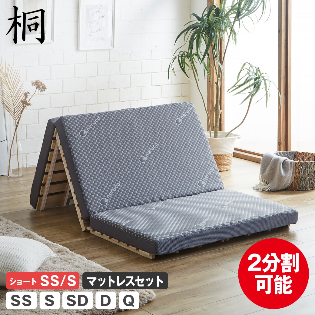 \クーポンで10%OFF★25日23:59まで!/ 三つ折りすのこマット すのこベッド セミシングル シングル セミダブル ダブル クイーン ショート マットレス付き 木製 低ホルムアルデヒド 軽量 軽い 二分割可能 コンパクト すのこマット 桐