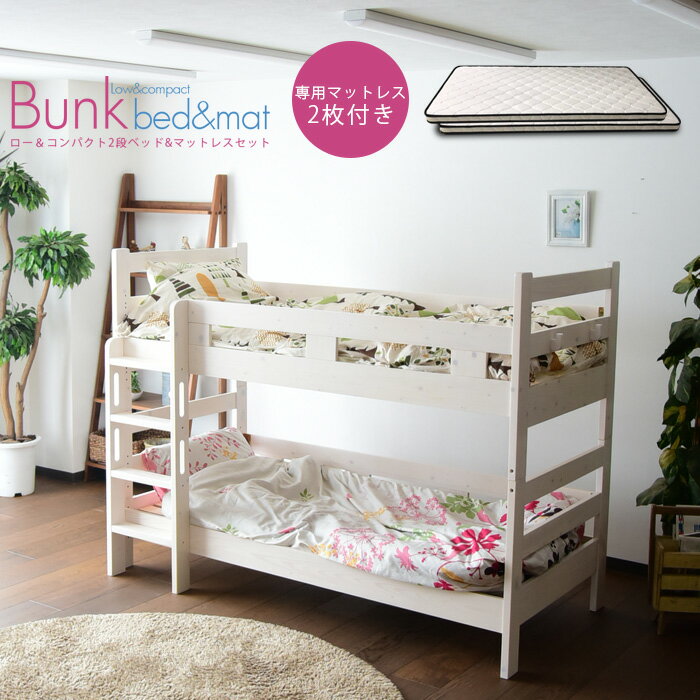 2段ベッド 二段ベッド セミシングル おしゃれ ロータイプ コンパクト 選べるマット付き パームマット 分割 子供 パイン ホワイト ナチュラル ハンガーラック すのこベッド シンプル 子供部屋 高さ137cm 小スペース