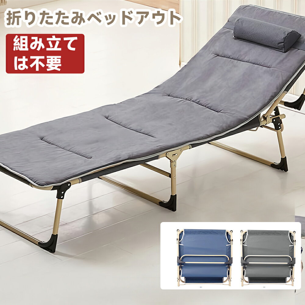 \ブラックフライデー 11/20-11/25 ポイント10倍 !/折りたたみベッド アウトドアベッド レジャーベッド 4段階調節 耐荷重160kg 組み立て簡単 マット付き 枕付き 簡易ベッド 仮眠 室内 アウトドア用 zm2200804-1