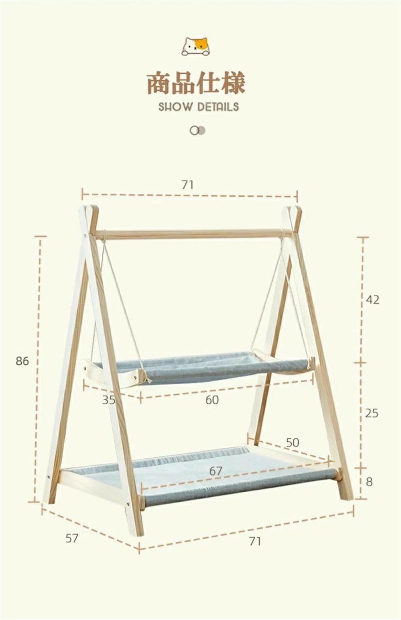 キャット ハンモック ブランコ 猫ベッド 猫ハンモック 猫 ベッド キャットベッド ペットベッド 天然木 木製 ねこ ネコ ベッド ハウス お昼寝 小型犬 洗える 丈夫 オールシーズン ペット用品 猫用品 二層 多頭飼い 耐荷重 取り外し洗い 耐荷重