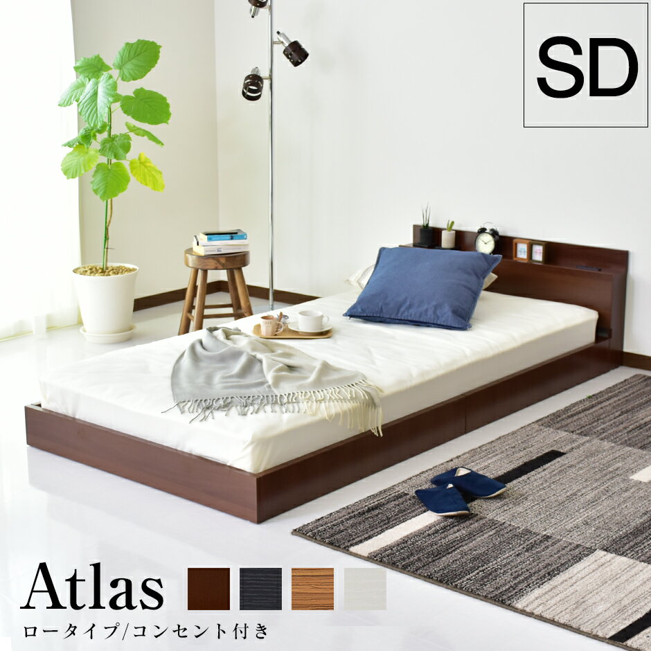 ベッドフレーム セミダブル ベッド ローベッド フロアベッド セミダブルサイズ 棚・コンセント付きNEWアトラスSD ドリス