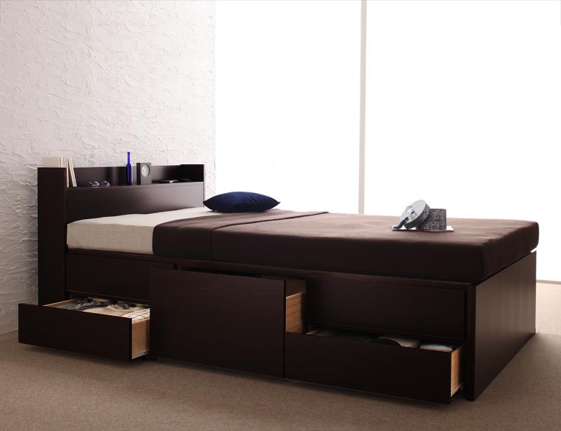 コンセント付き チェストベッド 【Spass】シュパース 【ベッドフレームのみ・マットレスなし】 セミダブル 【フレーム色】ダークブラウンベッドフレーム【サイズ】セミダブル:幅120×奥行き214×高さ80cm【床面までの高さ】セミダブル:41cm【その他サイズ情報】セミダブル:浅型引出し内寸:幅57×奥行き38.5×深さ12cm (×4)セミダブル:深型引出し内寸:幅57×奥行き38.5×深さ27cm (×1)セミダブル:長物収納内寸:幅66×奥行き193×深さ36cm (×1)【耐荷重】セミダブル:本体:180kg【その他機能情報】コンセント:1500W2口【材質】本体:MDFプリント引出し:桐集成材【生産国】日本【その他仕様】お客様組立品【組立について】※組み立て時間約60分※お客様自身で組み立てる場合は、プラスドライバーをご用意頂き、作業を行ってください。【注意情報】※各サイズ、重量は概算になります。※ベッドのフレームはスプリングマットレス使用時の基準で強度計算されております。そのため、床板に直接布団などを敷いてご利用になりますと破損の原因となる場合があり、大変危険です。床板の上に必ずスプリングマットレスを敷いてご利用ください。※商品のデザイン、仕様、梱包は、予告なく変更になる場合がございます。予めご了承ください。※この商品は、梱包サイズが大きくなっております。搬入経路のサイズをお確かめください。※写真の色調は、モニターの機種や設定により実際の商品と異なる場合がございます。【梱包サイズ】セミダブル:- 横幅:123cm×高さ:83cm×奥行:19cm 収納ベッド/収納付きベッド/チェストベッド/コンセント付き