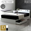 ルース ベッドフレーム ダブルベッド 棚付き コンセント付き 収納付き フレーム ポケットコイル セット モノトーン 幅140cm(代引不可)【送料無料】