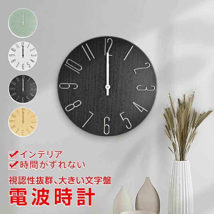【10(月)迄!10%オフCP】電波時計 壁掛け時計 時間自動設定 おしゃれ 静音 壁掛け 電波式 視認性抜群 リビング シンプル 静穏 静か 北欧 インテリア 韓国風 軽量 キッチン リビング 寝室 オフィス 電池式 選べる4カラー ブラック ホワイト グリーン ベージュ かわいい cc047
