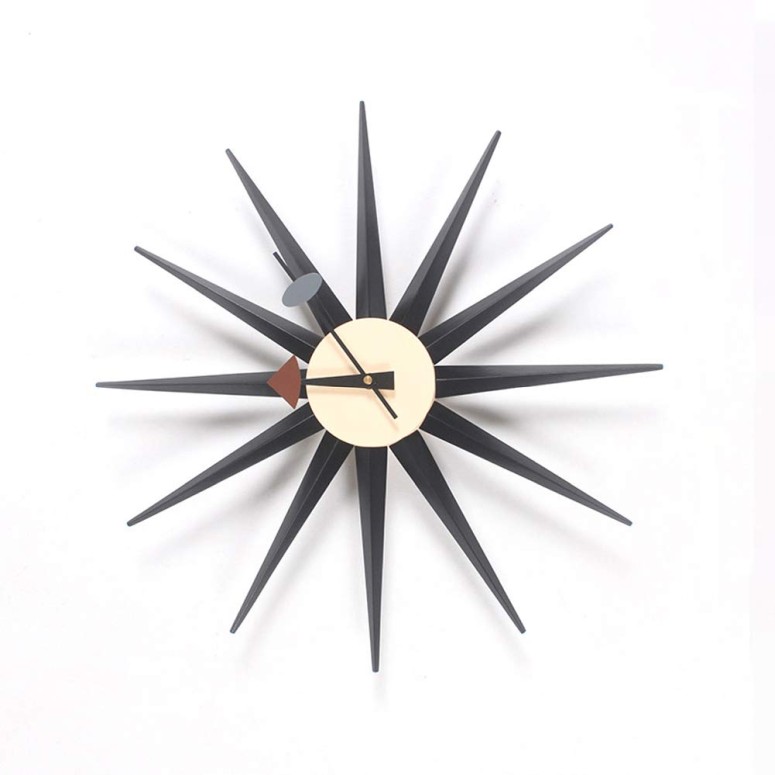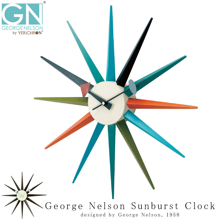 ミッドセンチュリーを代表するモダンデザインの傑作をお部屋に...。 コンテンポラリー・クロックのマスターピース = ネルソンクロック・シリーズの 数ある作品の中から、 今お部屋に欲しいデザイン・クロックをお届けします。 現在 GEORGE NELSON の版権(米商標登録 No.3463818)をもつ唯一のメーカーが日本国内で輸入販売しております。 「George Nelson ジョージ・ネルソン」 コネチカット州ハートフォード生まれ。1931年にイエール大学で建築の学位を取り、さらにローマのアメリカン・アカデミーに留学。 1935年に帰国後は建築ジャーナリストとして活躍した。1936年、ニューヨークでウィリアム・ハンビーと建築事務所を設立。 建築雑誌の編集長を務めたり、多くの建築・デザイン関連の著作を出版するなど、ミッドセンチュリーを代表する建築デザイナー、 編集者、作家、そして教師として、単にデザイン設計活動にとどまらない活躍を続けた。 特に1946年からの20年間、ハーマンミラー社のデザイン部長としてイームズ夫妻やイサム・ノグチの才能をモダン家具に実現させた功績は大きい。 ネルソン自身も、マシュマロソファ、ココナッツチェアなどの名作や、高いアート性を有する ネルソンクロックシリーズで、デザイナーとしての足跡を残しています。 そんなGeorge Nelsonシリーズのなかでも代表的なデザインのひとつで人気の高いモデルです。 太陽のようなトゲトゲとした印象的なデザインです。 サイズ(最大部を計測) 直径約48×7.6cm 商品詳細 重さ約670g 素材パイン材、メタル、亜鉛合金 付属単3電池1本使用 備考 ※商品写真は実物のカラーにより近づけるために調整してありますが、お客様のご覧になる機種・設定により実際の商品と画像の色が異なって見える事があります。 商品番号:GN396A お問い合わせの際は、商品番号をお伝えください。 商品名:George Nelson Sunburst Clock ウォールクロック 掛け時計 GN396