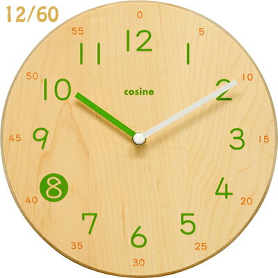 子供部屋に人気モデルインポータントエイト ウォールクロックメープルウッド デザイン掛け時計ナチュラルブラウン リーフグリーンお子様の時計の読み方の勉強にも協力WOODEN WALL CLOCK壁掛時計 カラー指針 スイーブ式ムーブメント