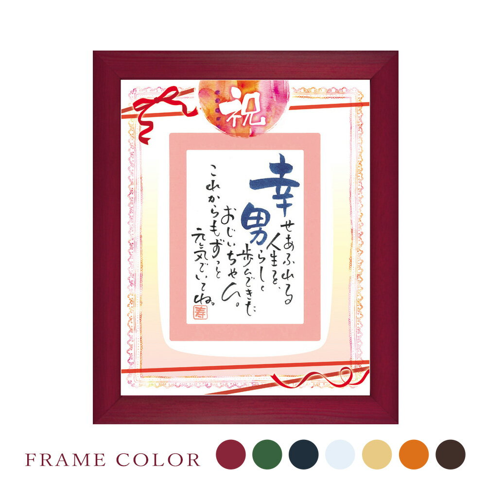 * 敬老の日限定商品詳細 * おじいちゃん 詩の内容 * おじいいちゃんバージョン * (お)おきな器で 見守り支え (じ)あいに満ちる 家庭を築く (い)つも優しく 周りを照らし (ち)からいっぱい 歩んだ道は (ゃ)ま越え谷越え 努力は実り け(ん)こう長寿の 未来へ続く おばあちゃん 詩の内容 * おばあちゃんバージョン * (お)もいやる心優しい 人柄で (ば)んじ努力し 家族のために (あ)いじょう深く 身を尽くす (ち)よの繁栄 長寿を願い (ゃ)すらぐ日々は 笑顔と共に じ(ん)せい輝き 慶び満ちる 額の大きさ A4サイズ (約28センチ×37センチ) 額の色 ブラウン(茶色)のみ 文字について 高級筆文字フォントを利用した印刷になります。 墨による手書きではございませんのであらかじめご了承ください。 ラッピング 敬老の日仕様にお包みします(無料) ※おじいちゃんバージョンは紺、おばあちゃんバージョンは赤になります。 【 各種 ギフト プレゼント にご利用ください】 還暦祝い 誕生日 古希祝い 喜寿祝い 米寿祝い 傘寿祝い 卒寿祝い 白寿祝い 百寿祝い 百賀祝い 紀寿祝い お祝い 御祝 結婚祝い 結婚 内祝い お返し 父の日 母の日 敬老の日 記念日 記念品 長寿祝い 退職祝い 定年 定年退職 卒業記念品 定年退職記念品 お誕生日 誕生日 誕生祝い お見舞い 退院祝い 入学祝い 入園 卒業 卒園式 大学合格 合格祝い 卒業祝い 就職祝い 歓送迎会 成人式 成人祝い 20歳 二十歳 ブライダル ウェディング ウェルカムボード 結婚式 両親贈呈 贈呈品 出産祝い 初節句祝い 七五三祝い 開店祝い 改築 新築祝い 引越し ご自宅用 結婚記念日 1年 25年 30年 40年 50年 10周年 20周年 25周年 30周年 40周年 50周年 還暦 古希 喜寿 傘寿 米寿 卒寿 白寿 百賀 百寿 退職 バレンタインデー ホワイトデー ひな祭り 七五三 いい夫婦の日 クリスマス 勤労感謝の日 金婚式 銀婚式 ルビー婚 真珠婚 エメラルド婚 ダイヤモンド婚 贈物 贈り物 記念品 御礼 ごあいさつ ご挨拶 御挨拶 お祝い返し お礼 お礼の品 ウェディングギフト ブライダルギフト 命名祝い 入園祝い 昇進祝い 上棟祝い ゴルフコンペ コンペ景品 景品 賞品 日頃の感謝 感謝の贈り物 感謝状 送別会 色紙 【 大切な方へ おすすめです 】 男性 女性 両親 お父さん お母さん 父 母 父親 母親 義父 義母 親戚 旦那 夫 妻 奥さん かみさん おじいちゃん おばあちゃん おじいさん おばあさん 祖父 祖母 祖父母 孫 家族 親戚 夫婦 60代 70代 80代 90代 60歳 70歳 77歳 80歳 88歳 90歳 99歳 100歳 百歳 1歳 遠くに住む 父母 パパ ママ 両親へのプレゼント 連名 ペア シニア 高齢者 セット 【 商品の特徴 】 ポエム メッセージ 入り オリジナル 詩 gift ギフト 友禅和紙 豪華 人気 人気商品 ランキング 和風 大量注文 のし無料 メッセージカード無料 ラッピング 無料 シンプル 七五調の詩 でリズムが良い 大きな文字 で読みやすい 飾っておける 毎日読める 明るく 元気がでる言葉 健康 長生き 長寿 を願う 尊敬 の言葉 ありがとう おめでとう 幸せ 健康長寿 幸運 心のこもった贈り物 人気 人気商品 ランキング 急ぎ お急ぎ 対応 紺 紫 赤 かわいい 筆文字 和風 古風 温かみ 温かい シニア 高齢者 【 こんな感想いただいてます! 】 感謝 のメッセージ が伝わる 気持ち伝わる言葉 感動 感激 涙 笑顔 今までで一番 嬉しい 初めて うれしい 記念に残る 心に残る めずらしい サプライズ 驚き 豪華 綺麗 読みやすい シンプル おしゃれ ラッピング かわいい 包装 梱包 完璧 丁寧 自慢したい 年配 シニア におすすめ 素敵な詩 期待を上回る品 感動的な言葉 オリジナル感 家族の絆 が高まる 心から良かった 何度も声に出して詠んでいました 思わず涙 記念に残る 家宝にする 心に響く単品のご購入はこちらから↓