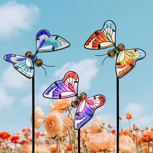 MrMrKuraガーデンピック蝶々ガラス製ガーデンスティックバタフライ3点セットアイアン飾りガーデニングピック動物園芸置物ガーデンオーナメント屋外可愛い