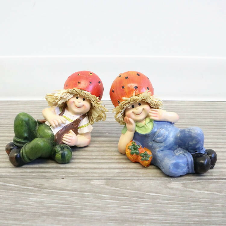 送料無料 ディスプレイ かわいい 置物 寝そべり人形 イチゴ 2SET インテリア インテリア雑貨 アンティーク オーナメント 飾り ガーデン ギフト 贈り物 プレゼント おしゃれ