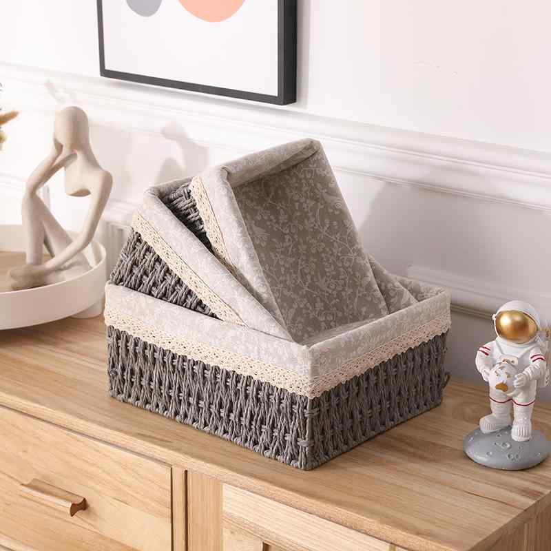 収納ケース レディース メンズ 卓上収納ボックス 化粧品 鍵 菓子 雑貨 リビング 玄関 ホーム用 藤編み カゴ カーキ色 コーヒー色 グレー ミニサイズ 大きいサイズ