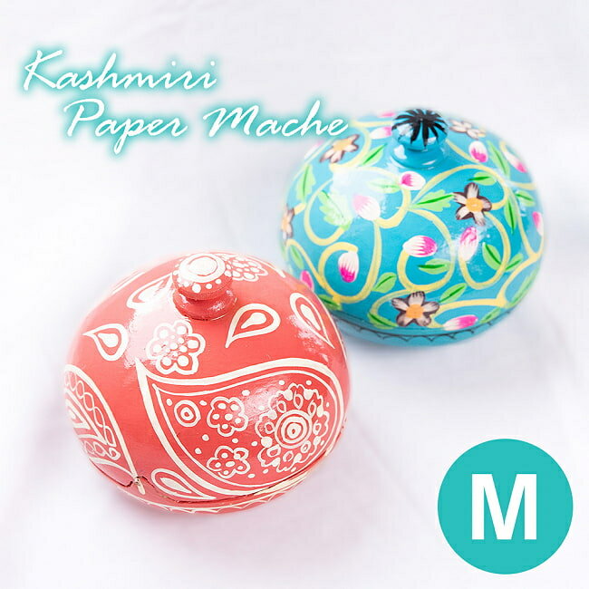 【全2色】カシミールのペーパーマッシュ 円形 小物入れ M / ピルケース ペルシャ アクセサリーケース インド エスニック アジア 雑貨【レビューで500円クーポン プレゼント】