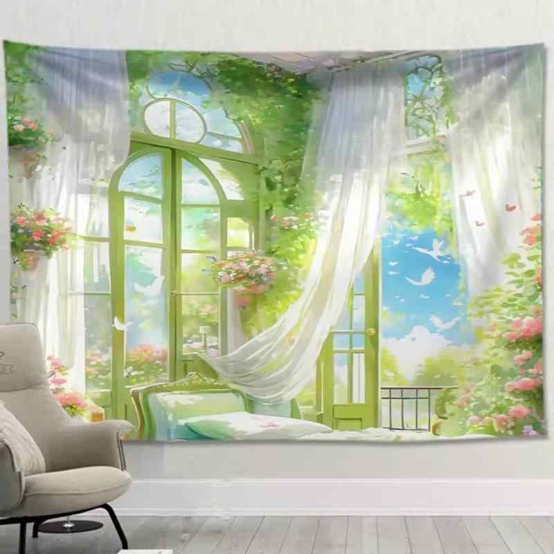 タペストリー 夢幻 癒やし 窓 背景布 壁掛け 布 部屋 ベッド装飾 キャンバス ライブ配信 ウォールデコレーション ポリエステル 風景柄
