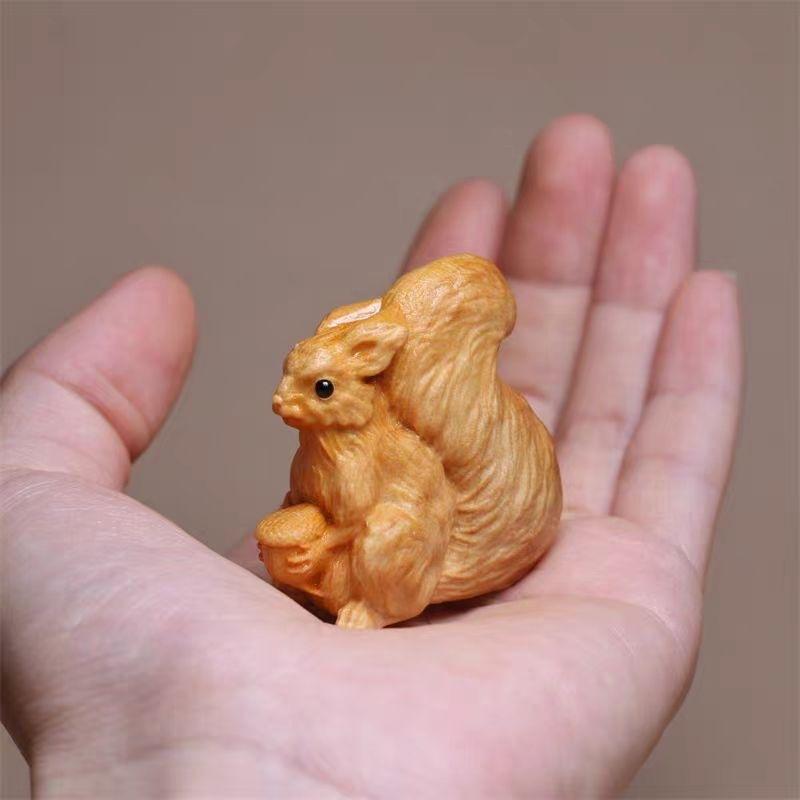 木彫り レディース リス 松ぼっくり 崖柏材 かわいい ミニ 置物 インテリア 雑貨 手のひらサイズ 動物モチーフ 木製 オブジェ