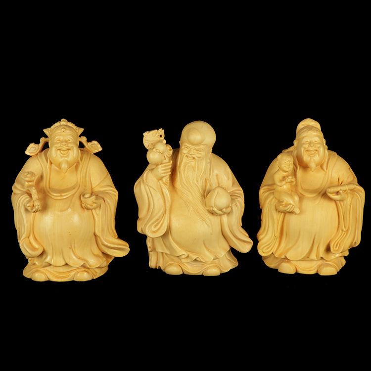 ツゲの木彫り 置物 福禄寿 三神 工芸品 美術品 精巧 彫刻 インテリア 卓上飾り リビング 玄関 コレクション 縁起物 開運 贈り物 ギフト 高級感 和風