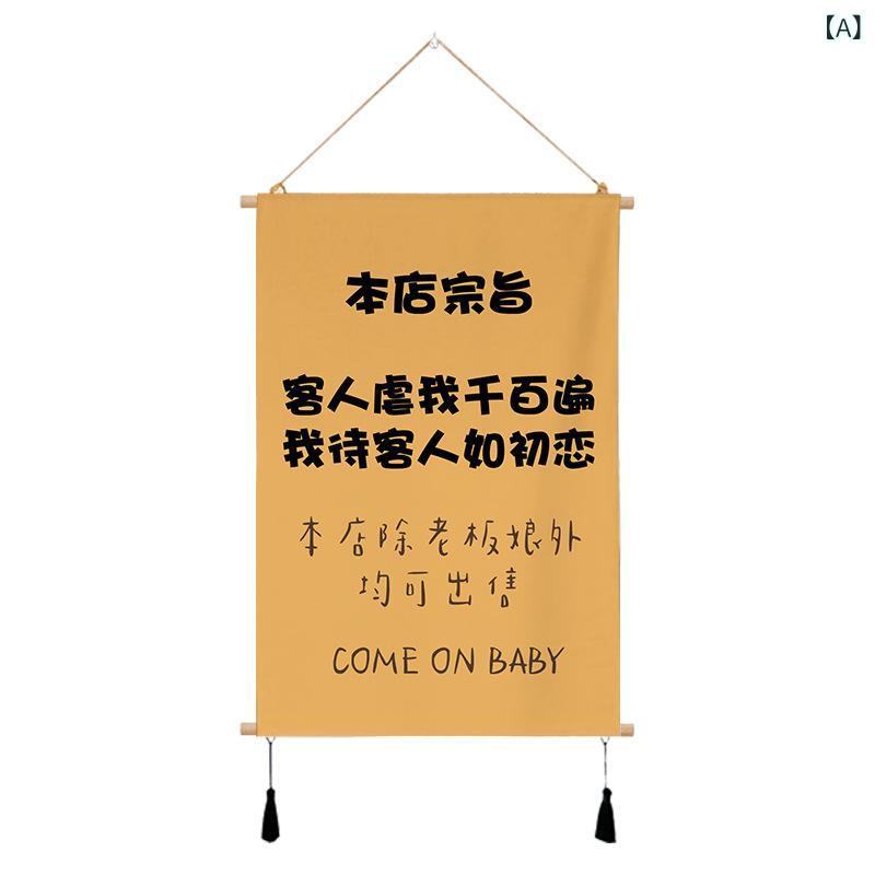 ・素材: 綿麻混紡・主な生地成分: 綿・主な生地成分の含有量: 30%-40%・スタイル: その他・形状: 長方形・パターン: その他・販売方法: 単品・カラー: 白色, 黄色, 赤色, 浅緑色, 浅黄色, 褐色・洗濯タイプ: その他・サイズ: 幅40cm×高さ60cm, 幅50cm×高さ70cm, 幅60cm×高さ90cm・場所: 室外, レストラン, 商業施設・カテゴリ: 掛け軸