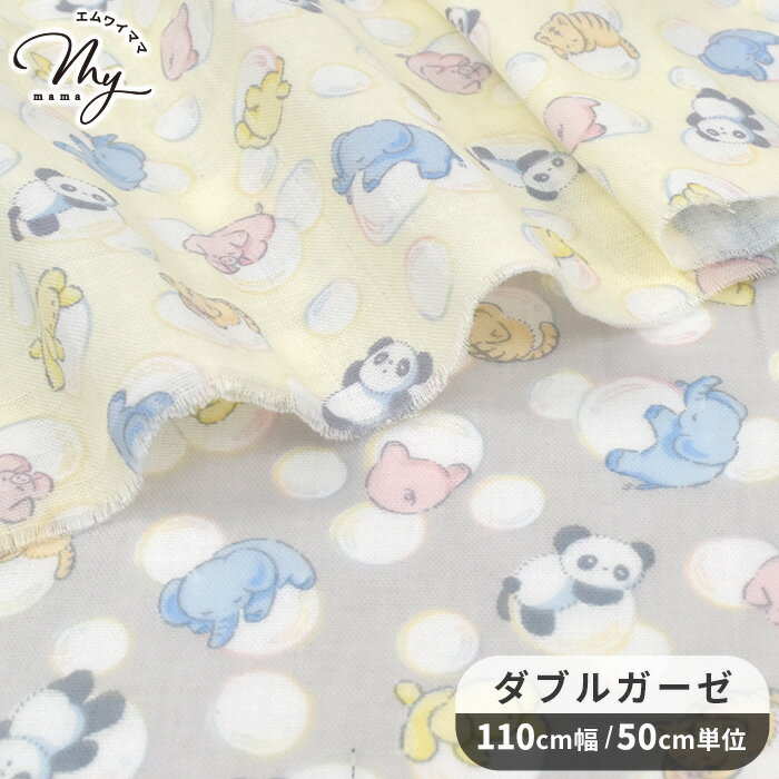 【先着150円OFFクーポン】ダブルガーゼ 生地 シャボン玉 アニマル ■ しゃぼん玉 動物 ゾウ パンダ ブタ 猫 ねこ ネコ 可愛い 国産 綿 100% 布 コットン パジャマ マスク スタイ ベビー キッズ 手芸 手作り ハンドメイド 商用利用可 eki40 ■