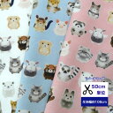 【50cm単位】【シーチング】「ボーダー3カラー♪ふわふわ小さなアニマルズ」 コットン100% 生地 布 綿 デジタルプリント ベビー スタイ ハンドメイド 生地 動物 ブタ 猫 犬 パンダ キツネ 牛