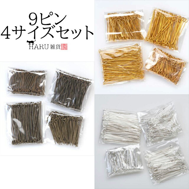 9ピンセット 4サイズ 20mm 26mm 32mm 40mm qピン アクセサリー パーツ 接続パーツ 金具 手芸 ハンドメイド ピアス イヤリング ネックレス ブレスレット ストラップ アンティーク ゴールド ホワイトシルバー